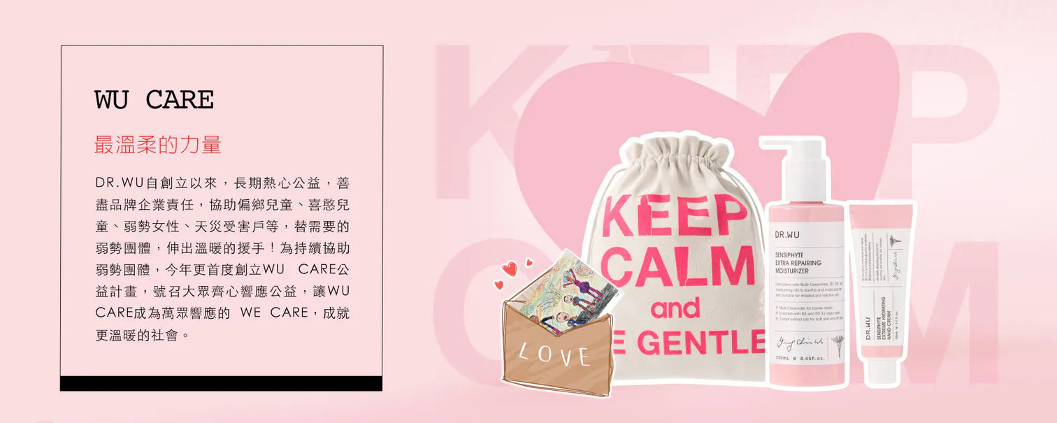 在物質不虞匱乏的現代社會,幸福樸實的日常生活看似平凡,甚至顯得不太起眼。然而,生命的轉變總是難以預料,突如其來的打擊與變化,讓平淡的生活,霎時成為不少人遙不可及的奢望。DR.WU 持續關懷不同的弱勢團體與個案,期許透過品牌的幫助,為社會增添即時的溫暖力量。